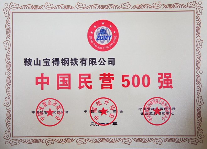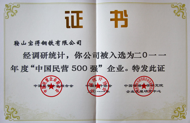 公司榮獲2011中國民營(yíng)經(jīng)濟500強,排名第391位。遼寧省共12家企業(yè)入選。