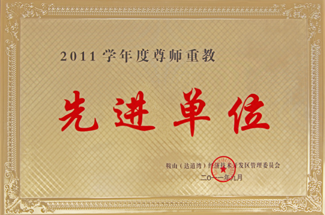 2011年9月,公司被鞍山(達道灣)經(jīng)濟技術(shù)開(kāi)發(fā)區管理委員會(huì )授予“2011學(xué)年度尊師重教先進(jìn)單位”。