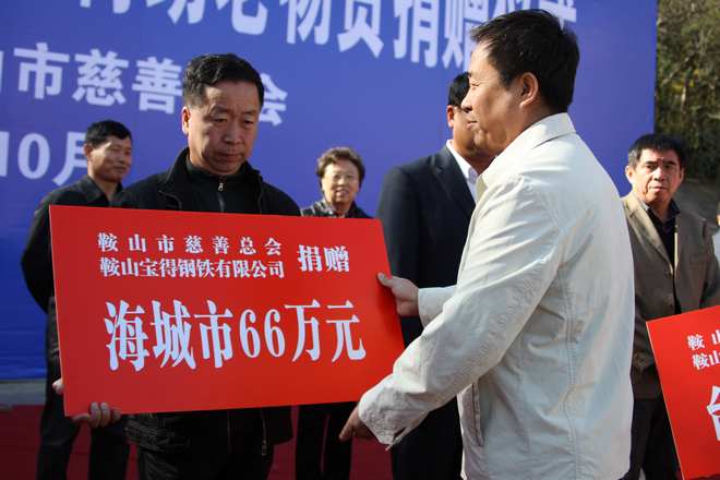 10月16日,公司總經(jīng)理張鐵漢出席市慈善總會(huì )“敬老月”活動(dòng)。繼2009年公司捐資300萬(wàn)元為全市72所敬老院購置家電、廚具等,今年公司再次捐資200萬(wàn)元,為全市72所敬老院,共3600多名孤寡老人添置新衣、被褥,讓這些頤養天年的老人感受到社會(huì )主義大家族的溫暖。(圖為“敬老月”活動(dòng)現場(chǎng))